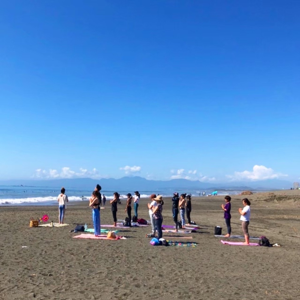 | 室内で行うヨガとは違います 砂砂になって 太陽の日差しや風もあります 波の音を聴きながら ポーズの完成度というよりは 地球と一体化してもらえればと思います |